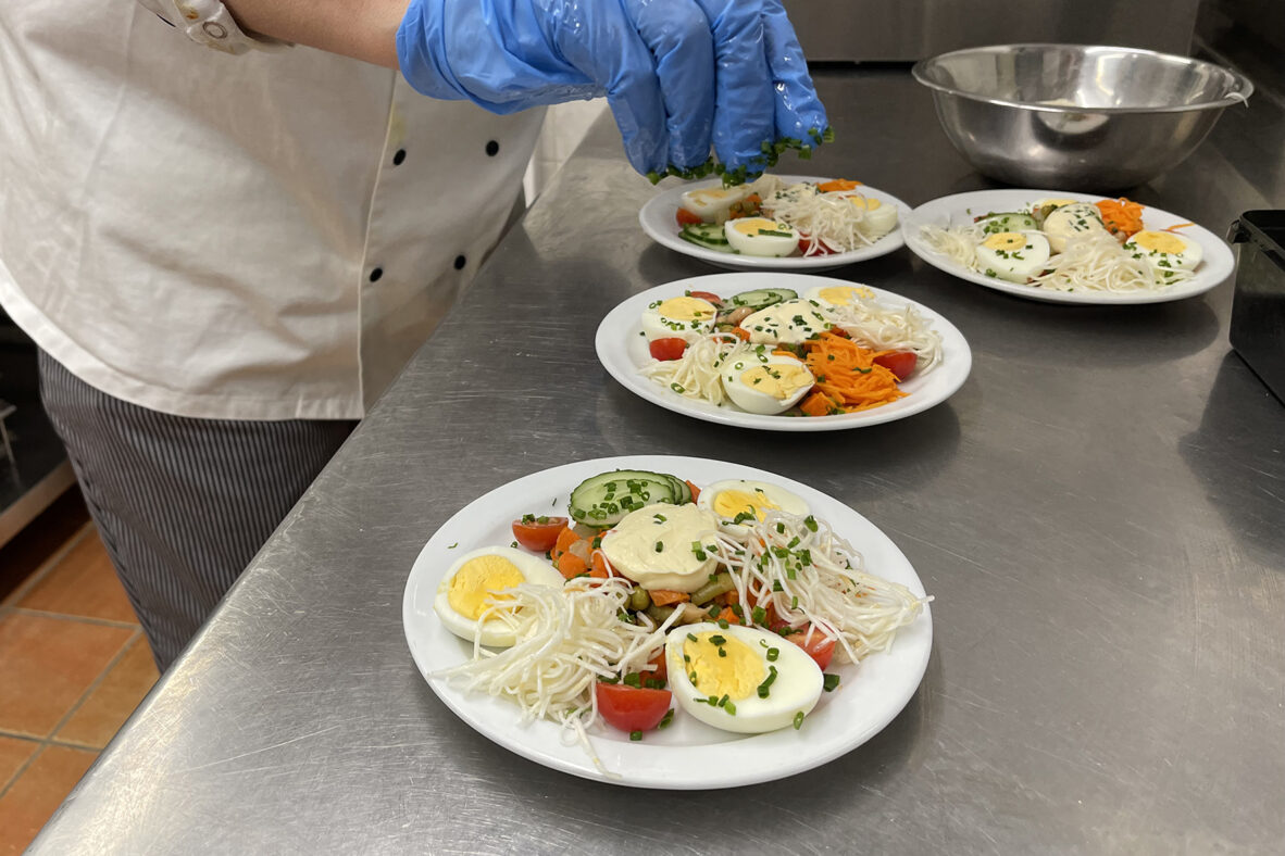 Nos repas sont préparés sur place. Les menus sont validés par notre diététicien externe (Sodexo).